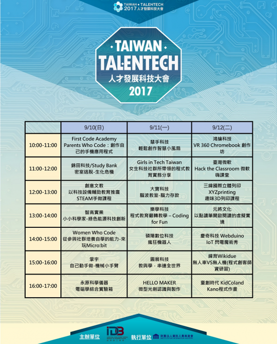經濟部工業局「TalenTech人才發展科技大會2017」謹訂於106年9月10日至9月12日假台北市世界貿易中心展覽一館盛大舉行