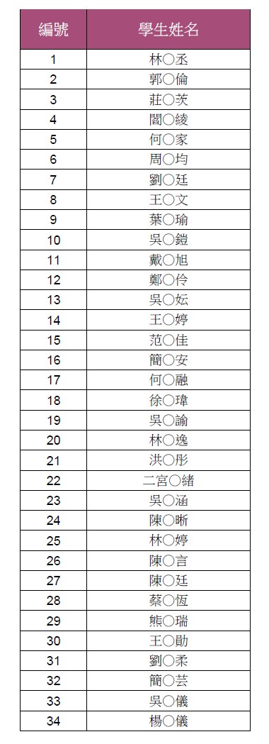 34位正取學生已全部完成報名繳費,無備取名額,名單如附。