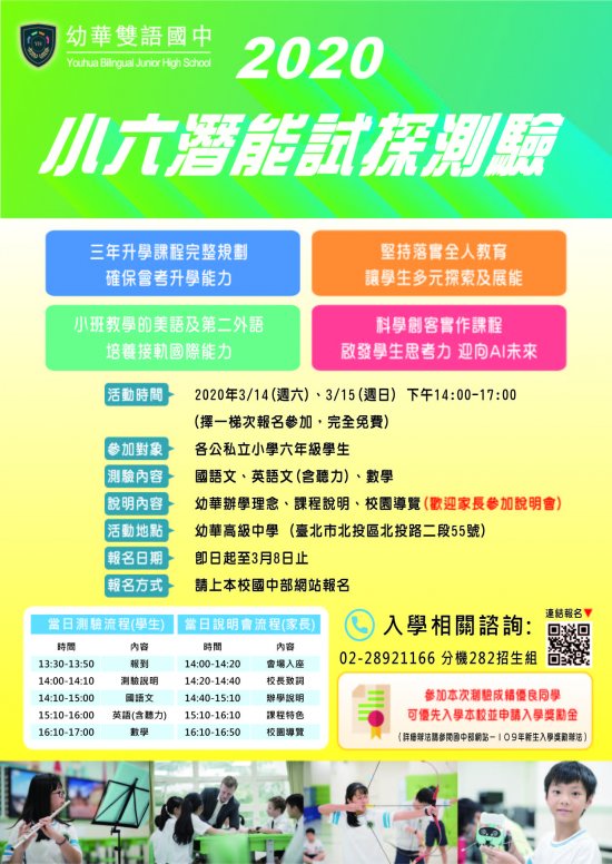 二、活動地點:臺北市幼華雙語國中(臺北市北投區北投路二段 55號,北投捷運站旁)