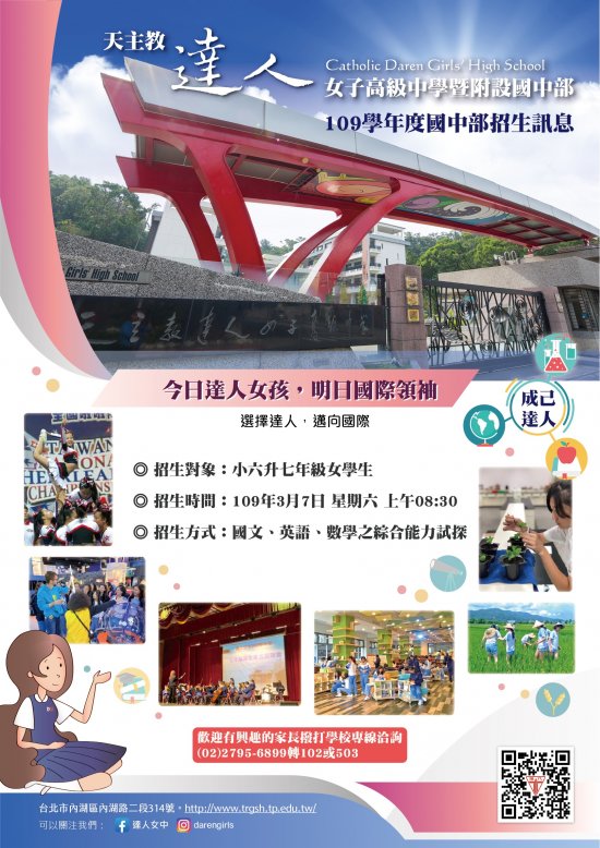 達人女中國中部七年級新生綜合能力探索活動相關訊息及說明均上載於學校網站,網址為http://www.trgsh.tp.edu.tw,請參考連結內容及附件。