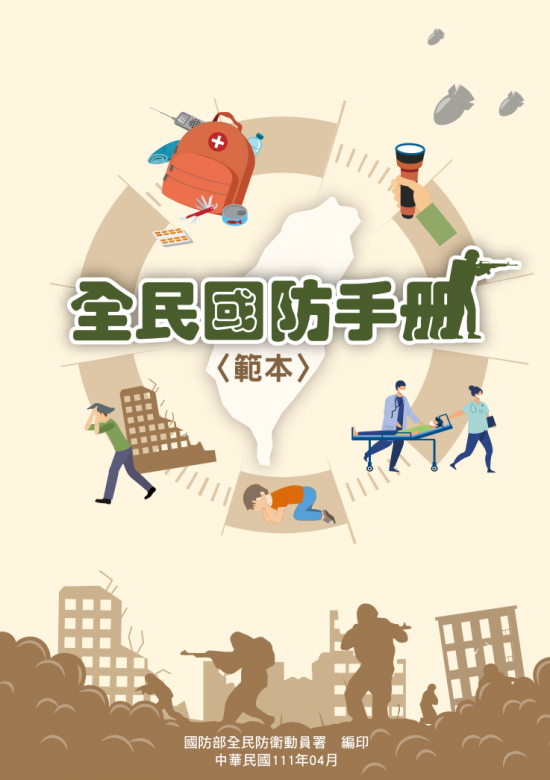 國防部於111年4月12日公告「全民國防手冊(範本)」,提供各部會、縣市政府、民眾相關緊急應變資訊。