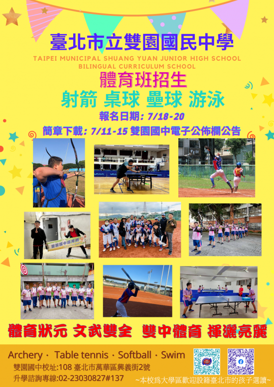 主旨:雙園國中111學年度體育績優生(體育班)甄選。