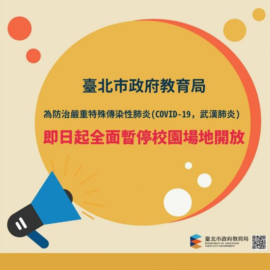 為因應新冠肺炎防治,本市教育局公告國中小即日起室內、外一律平假日暫停開放,家長非必要請勿進入校園,防疫期間,請共同守護校園整潔及學生健康。