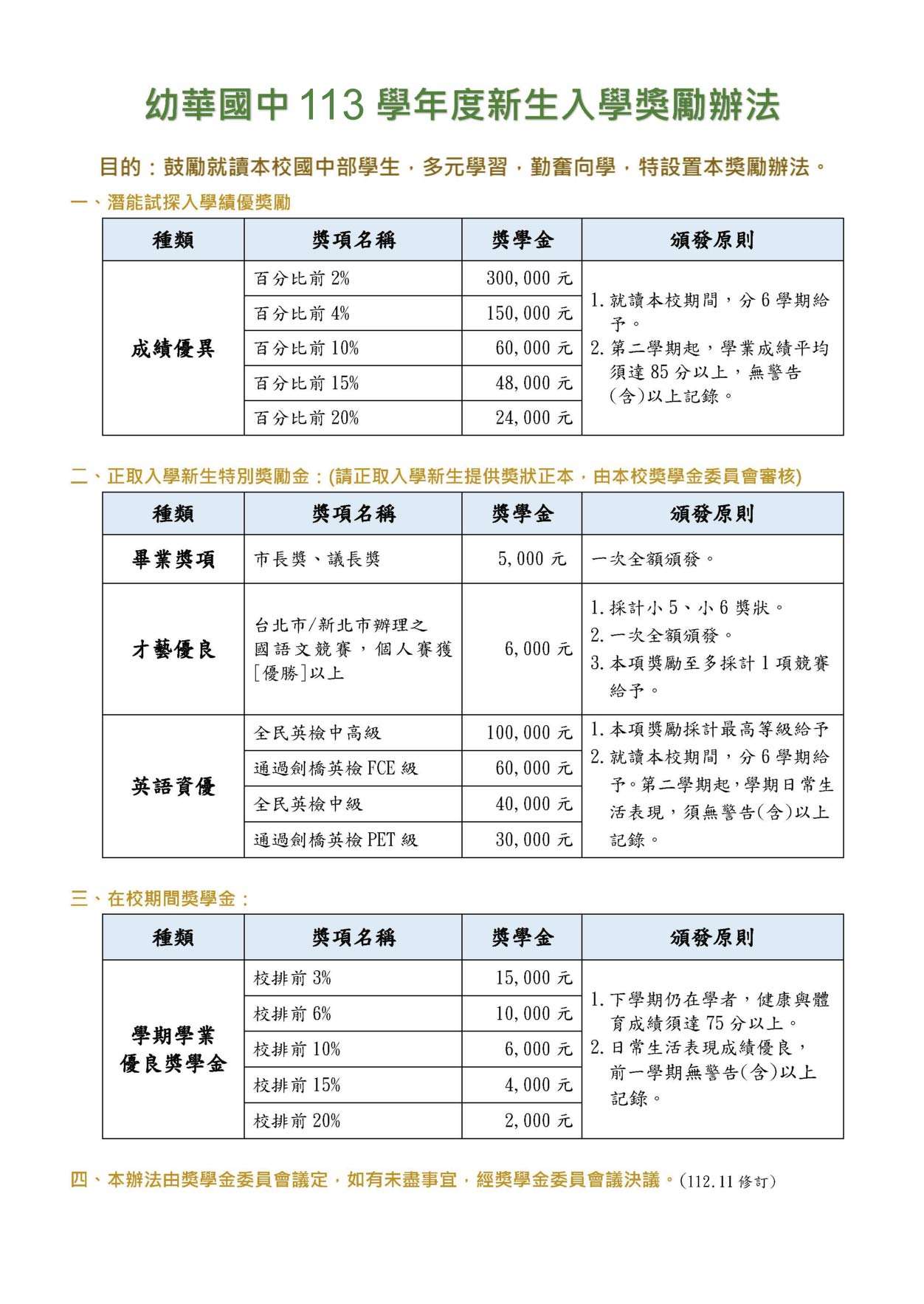 說明: 一、活動日期:113年3月10日(日)上午場次、下午場次,共二 梯次(擇一參加)。 二、活動地點:臺北市幼華雙語國中(臺北市北投區北投路二段 55號,捷運北投站旁)。 三、報名資格:113年國小六年級應屆畢業生。 四、檢測項目:國語(含寫作)、英語(含聽力)、數學。 五、活動費用:免費參加。 六、報名方式:請至本校網頁 http://rpage.yh.tp.edu.tw/ 線上報名。 七、檢附「113幼華小六潛能試探測驗」活動簡章電子檔,惠請 協助於貴校網頁連結公告。