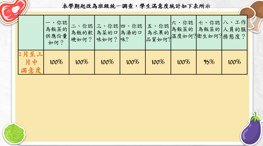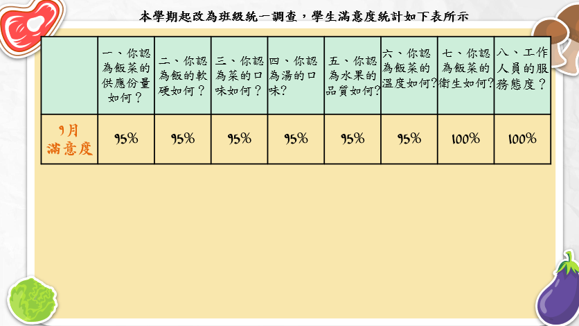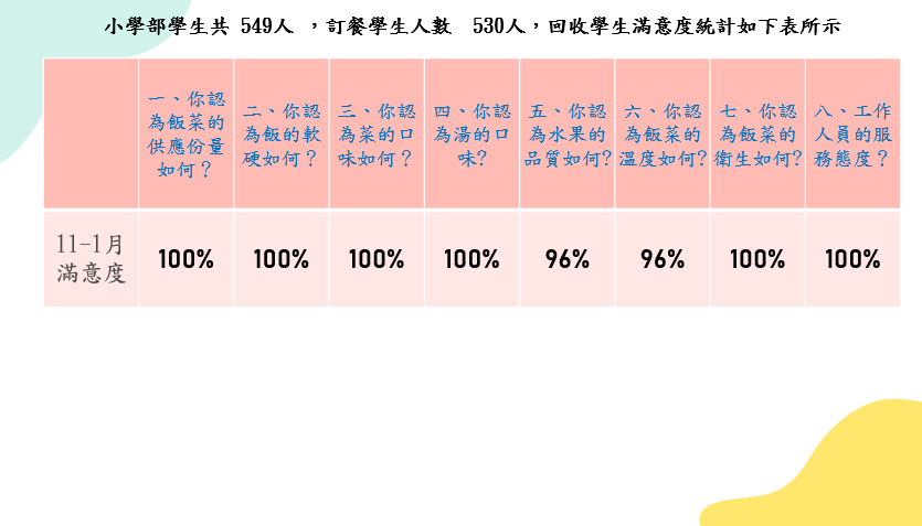 附檔為113學年迄今之午餐滿意度統計結果,謹補充公告周知。