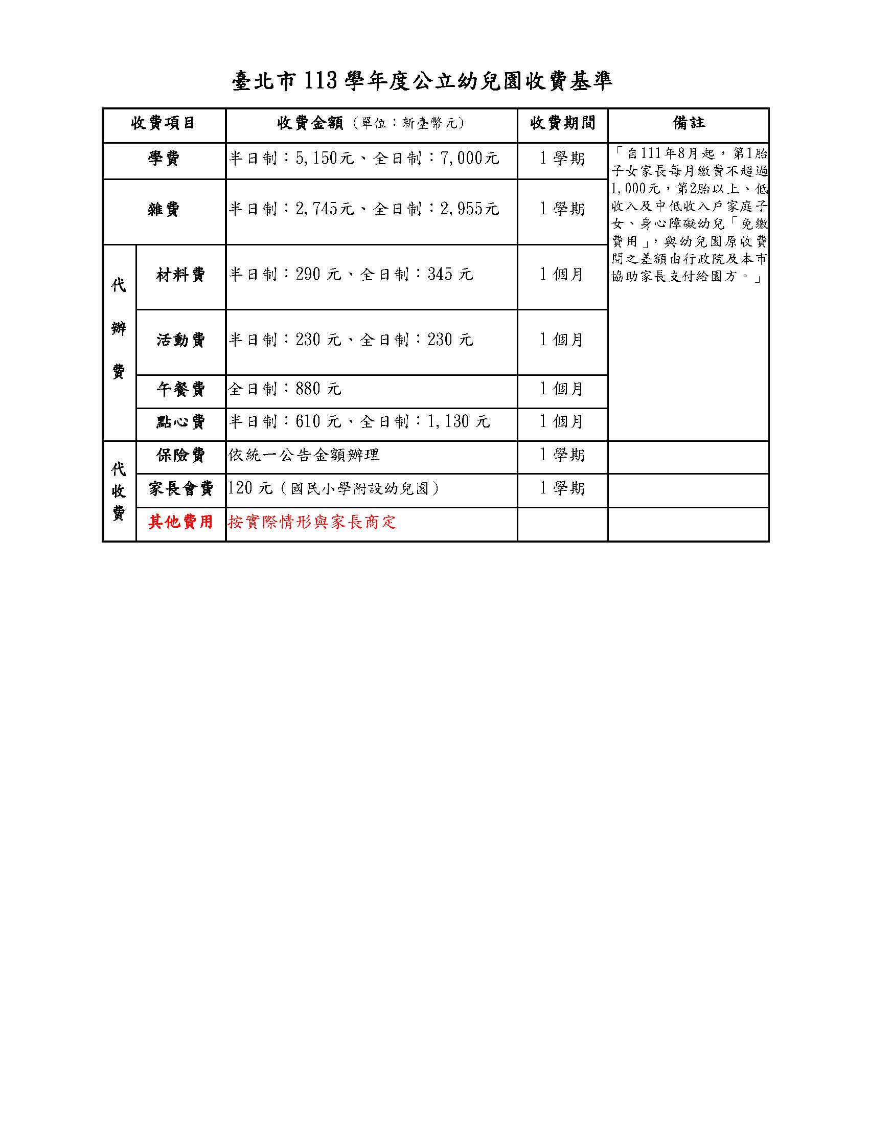 台北市教保服務機構收退費辦法刊登網址連結
